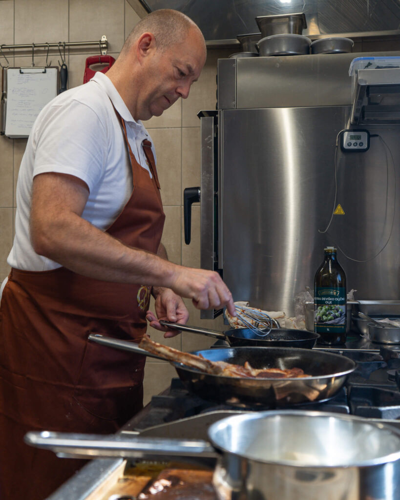 “Svojo kuharsko pot sem začel že v mladosti, ko sem prve izkušnje pridobival v družinski restavraciji, kjer sem se učil osnov kuharskega poklica in ljubezni do hrane. Kasneje sem kot protokolarni kuhar v JGZ Brdo naučil pomena natančnosti, elegance in diskretnosti, nato pa sem deloval v podjetju Supercatering, kjer sem skrbel za pogostitve filmskih produkcij – od snemalnih ekip do zvezdnikov z največjimi apetiti. Danes pa najraje ustvarjam v naši kuhinji – kjer lahko kuham po domače in z dušo. Na krožniku skušam odražati preplet tradicije, ustvarjalnosti in profesionalnosti.”